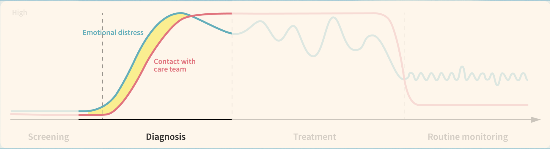 Our solutioning pivoted from providing information during all the transitions of care, to emotional readiness at the just the specific diagnosis moment, where confusion, disorientation, and stress spikes.